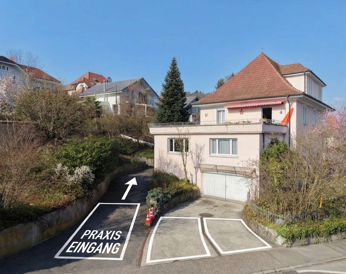 Es stehen drei Parkplätze vor dem Haus zur Verfügung. Sie können bequem mit dem Auto, dem Velo oder zu Fuss zu uns kommen. Vom Bahnhof Schönenwerd sind es ca. 10 Gehminuten.